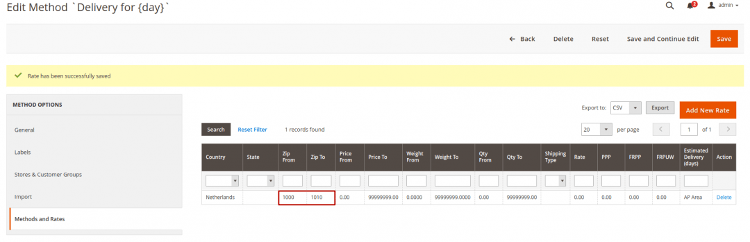 Configuring Shipping Table Rates for the Netherlands
