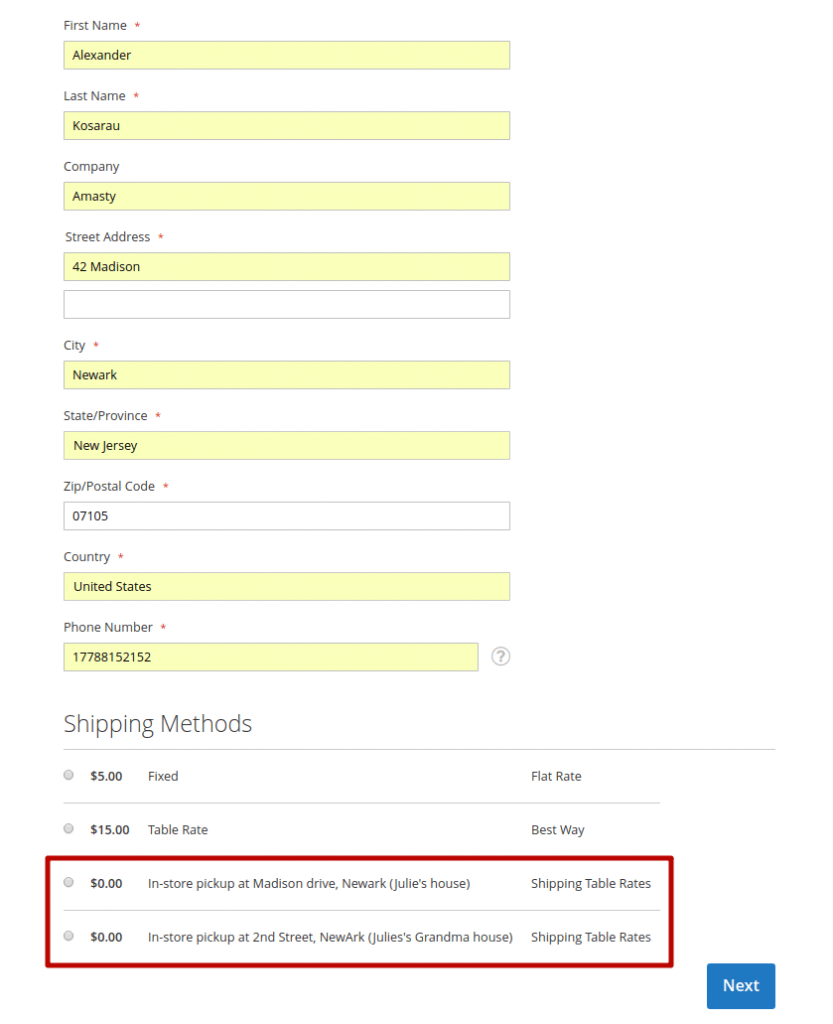 Let’s imagine Julie, an ambitious and creative maker of handmade accessories. For now, her products are available only for in-store pickup in Newark. There are two ways she can set such a shipping method in her Magento store: using off-the-shelf Free Shipping and Flat Rate or Amasty Shipping Table Rates.