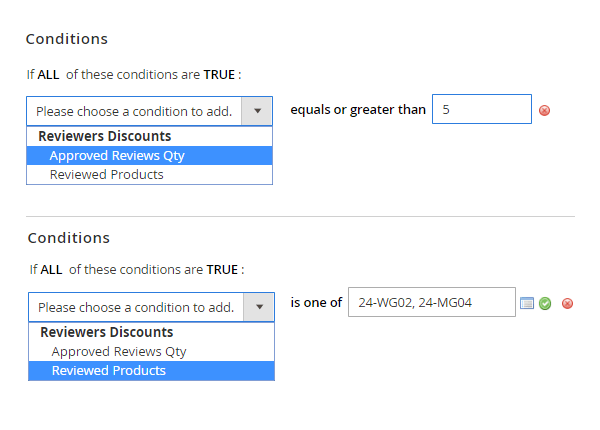 The extended functionality allows you to create highly-targeted promo campaigns: you may provide registered customers with discounts for reviewing particular products only. The strategy is aimed to increase the interest in specific items and boost their sales with no additional marketing costs.