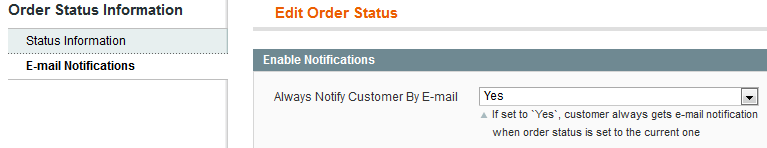 1. This setting is applicable on an order status level, i.e. you can choose which order status changes should trigger email notifications.