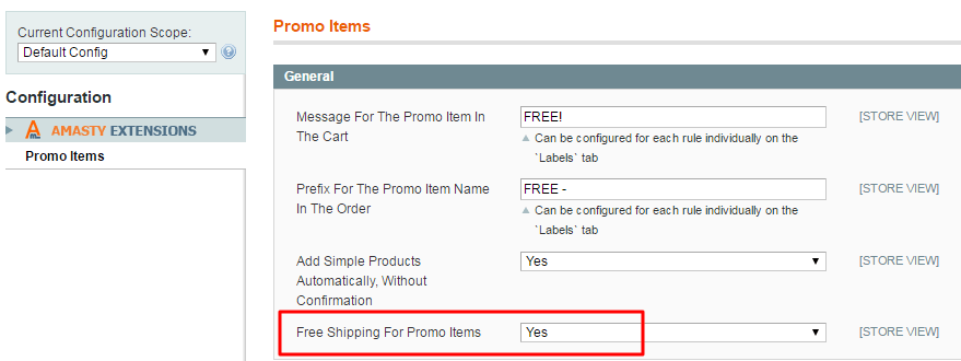 Special Offers You can allow or restrict free shipping for promo items. This can be done in the global settings of Auto Add Promo Items (Free Gift) extension: