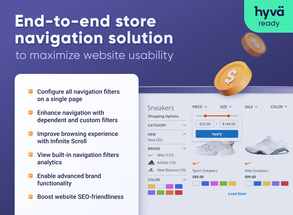 Set the different sort order for top and sidebar navigation blocks. Flexibly organize the filters via drag and drop in the order you need them to be displayed for customers.