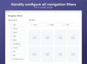 No need to set up each attribute individually, quickly configure navigation filters settings on a single page. Add or remove filters from the navigation just in one click.