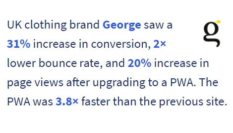 The solution was to combine all benefits of the app (such as performance) and a cross-browser web (such as maintenance). That’s how a Progressive Web App appeared. The results are impressive - AliExpress got 104% for new users across all browsers; 82% increase in iOS conversion rate, 2X more pages visited per session and 74% increase in time spent. And they are not alone. Check PWA case studies below to make sure all these companies were right.